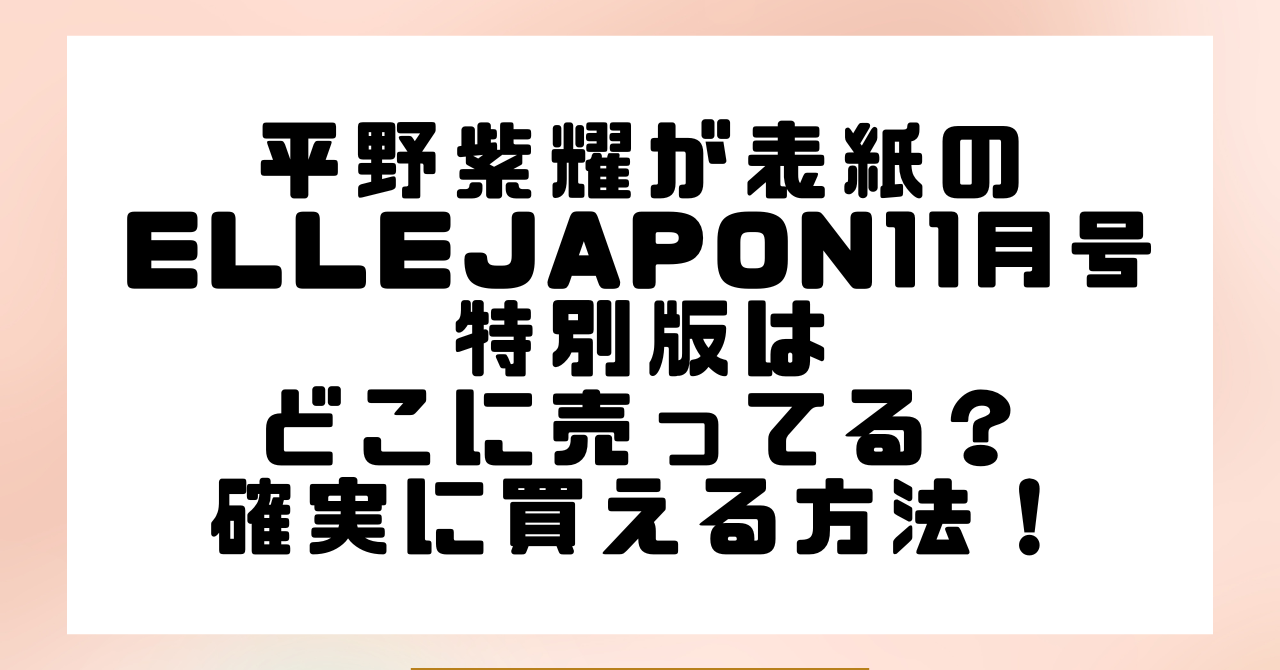 平野紫耀が表紙のELLEJAPON11月号特別版はどこに売ってる?
