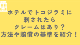 LIFE ホテルでトコジラミに刺されたらクレームはあり?方法や賠償の基準を紹介! ホテルでトコジラミに刺されたらどうすればいいの?クレーム言ってもいいのかな?と不安になりますよね。 トコジラミに刺されると、かゆみや発疹などの不快な症状が出るだけでなく、感染症やアレルギーなどの重篤なリスクもあります。 また、トコジラミは繁... 2023.11.24 LIFE旅行